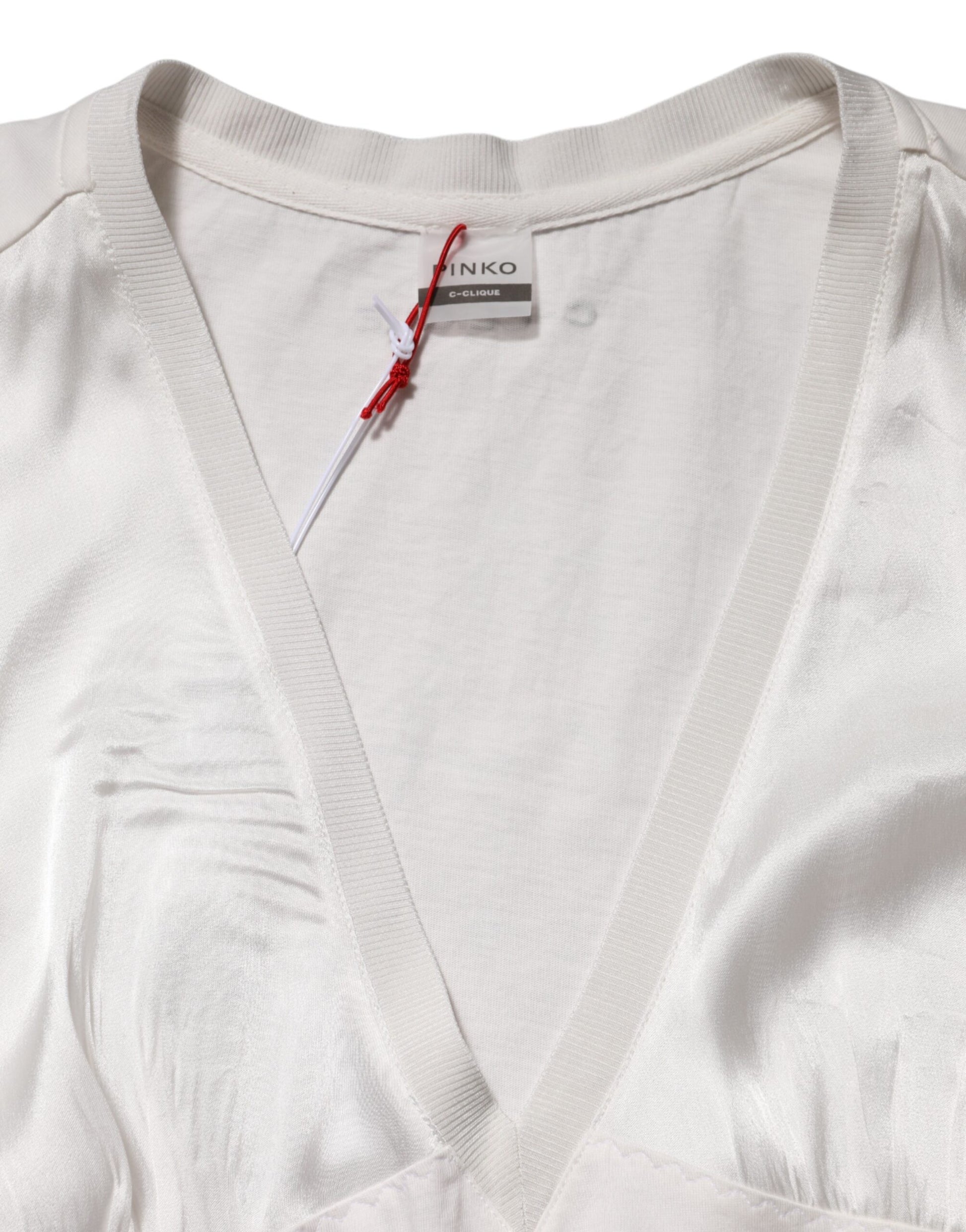 PINKO White Silk Blend Lace Trim Sleeveless V-Neck Women’s Top